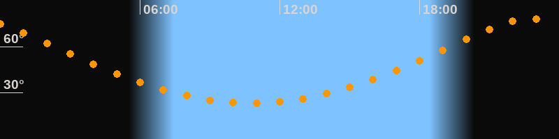 | Höchster Stand (Kulmination) | 22:46 Uhr (h = 78,1°) |