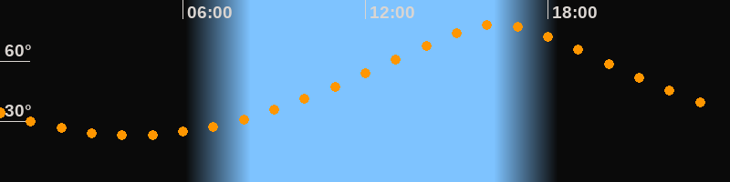 | Höchster Stand (Kulmination) | 16:20 Uhr (h = 78,1°) |