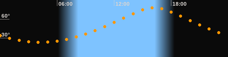 | Höchster Stand (Kulmination) | 16:12 Uhr (h = 78,1°) |
