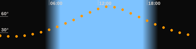 | Höchster Stand (Kulmination) | 13:22 Uhr (h = 78,1°) |