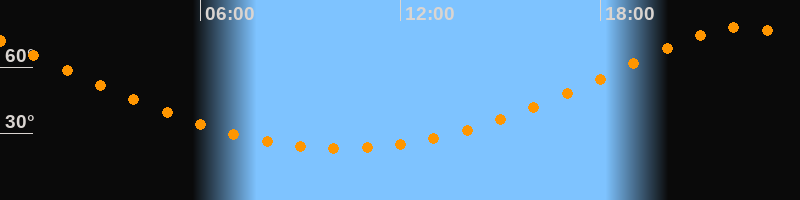 Höchster Stand (Kulmination)22:15 Uhr (h = 78,1°)