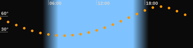 | Höchster Stand (Kulmination) | 19:52 Uhr (h = 78,1°) |