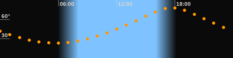 Höchster Stand (Kulmination)17:43 Uhr (h = 78,1°)
