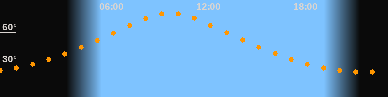 | Höchster Stand (Kulmination) | 10:31 Uhr (h = 78,1°) |