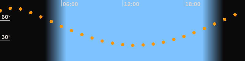 | Höchster Stand (Kulmination) | 01:13 Uhr (h = 78,1°) |