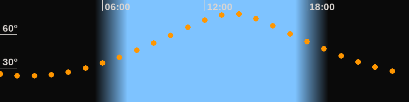 | Höchster Stand (Kulmination) | 13:36 Uhr (h = 78,1°) |