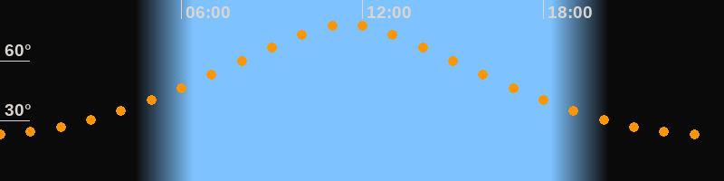 | Höchster Stand (Kulmination) | 11:30 Uhr (h = 78,1°) |