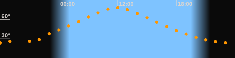 | Höchster Stand (Kulmination) | 11:55 Uhr (h = 78,1°) |