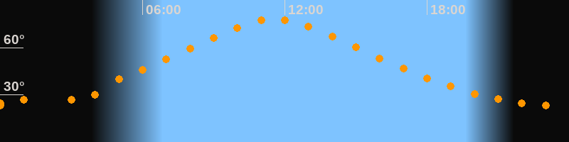 | Höchster Stand (Kulmination) | 11:33 Uhr (h = 78,1°) |