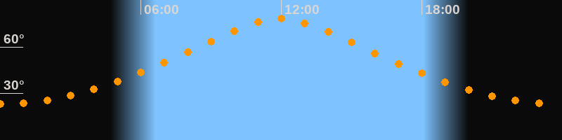 | Höchster Stand (Kulmination) | 11:56 Uhr (h = 78,1°) |