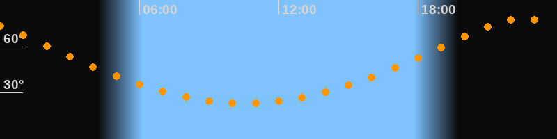 | Höchster Stand (Kulmination) | 22:31 Uhr (h = 78,1°) |