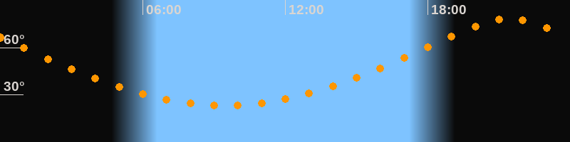 | Höchster Stand (Kulmination) | 21:24 Uhr (h = 78,1°) |
