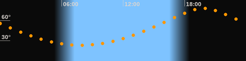 | Höchster Stand (Kulmination) | 19:51 Uhr (h = 78,1°) |