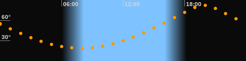 | Höchster Stand (Kulmination) | 19:53 Uhr (h = 82,4°) |