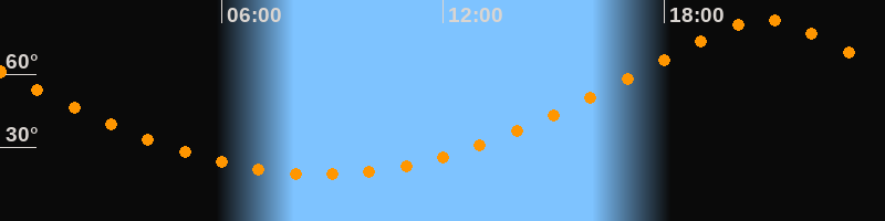 | Höchster Stand (Kulmination) | 20:41 Uhr (h = 82,4°) |