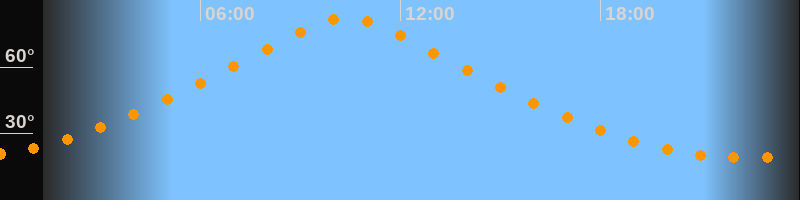 | Höchster Stand (Kulmination) | 10:23 Uhr (h = 82,4°) |