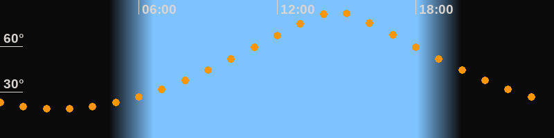 | Höchster Stand (Kulmination) | 14:30 Uhr (h = 82,4°) |