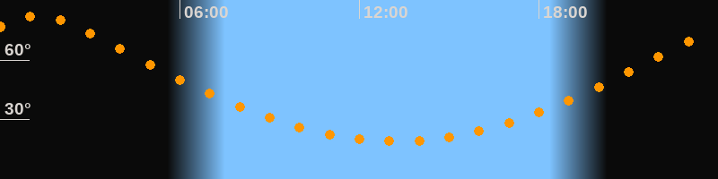 | Höchster Stand (Kulmination) | 01:13 Uhr (h = 82,4°) |