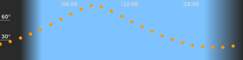 | Höchster Stand (Kulmination) | 09:16 Uhr (h = 82,4°) |