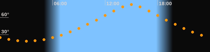 | Höchster Stand (Kulmination) | 14:59 Uhr (h = 82,4°) |