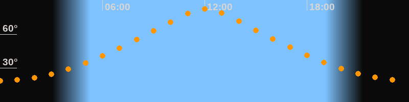 | Höchster Stand (Kulmination) | 12:02 Uhr (h = 82,4°) |