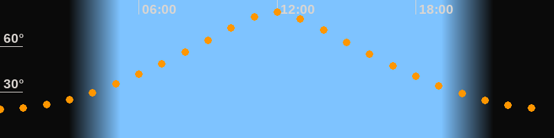 | Höchster Stand (Kulmination) | 11:54 Uhr (h = 82,4°) |
