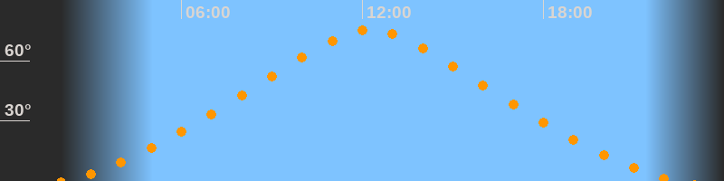 | Höchster Stand (Kulmination) | 12:15 Uhr (h = 75,2°) |