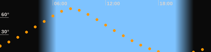 | Höchster Stand (Kulmination) | 08:08 Uhr (h = 75,2°) |