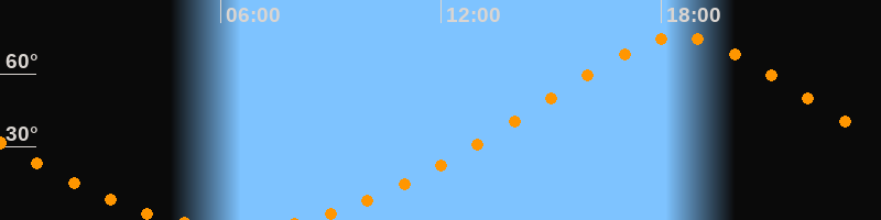 Höchster Stand (Kulmination)18:30 Uhr (h = 75,2°)
