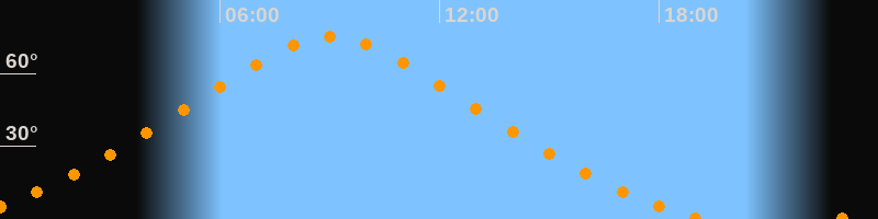 | Höchster Stand (Kulmination) | 09:01 Uhr (h = 75,2°) |
