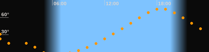 | Höchster Stand (Kulmination) | 18:28 Uhr (h = 75,2°) |