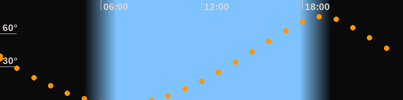 | Höchster Stand (Kulmination) | 19:10 Uhr (h = 75,2°) |