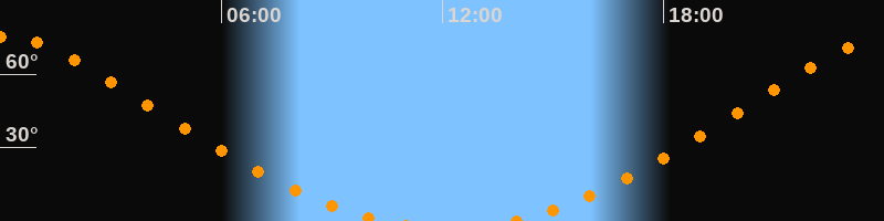Höchster Stand (Kulmination)00:07 Uhr (h = 75,2°)