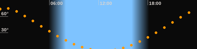 Höchster Stand (Kulmination)00:36 Uhr (h = 75,2°)