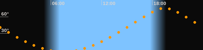 | Höchster Stand (Kulmination) | 19:28 Uhr (h = 75,5°) |