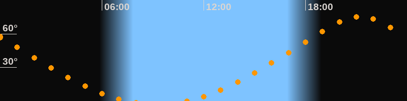 | Höchster Stand (Kulmination) | 21:12 Uhr (h = 75,5°) |