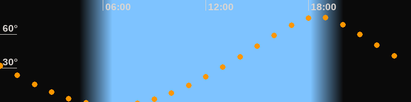 | Höchster Stand (Kulmination) | 18:32 Uhr (h = 75,5°) |