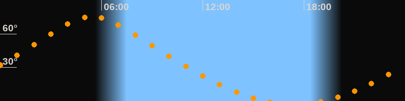 | Höchster Stand (Kulmination) | 05:27 Uhr (h = 75,5°) |