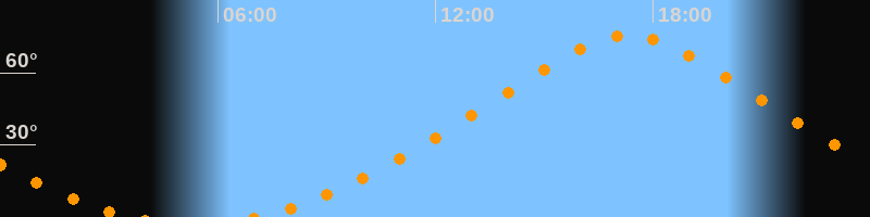 | Höchster Stand (Kulmination) | 17:19 Uhr (h = 75,5°) |