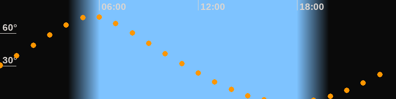 | Höchster Stand (Kulmination) | 05:36 Uhr (h = 75,5°) |