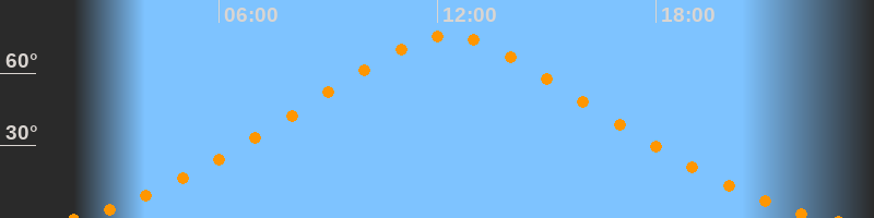 | Höchster Stand (Kulmination) | 12:18 Uhr (h = 75,5°) |