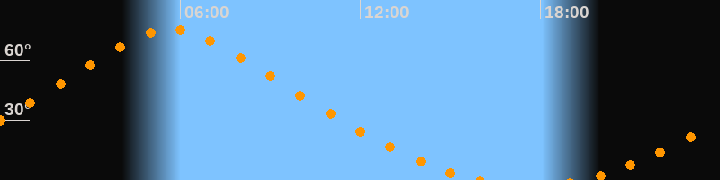 | Höchster Stand (Kulmination) | 05:41 Uhr (h = 75,5°) |