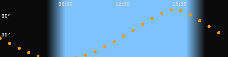 | Höchster Stand (Kulmination) | 18:18 Uhr (h = 75°) |