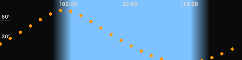 | Höchster Stand (Kulmination) | 06:19 Uhr (h = 75°) |