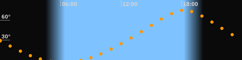 | Höchster Stand (Kulmination) | 18:15 Uhr (h = 75°) |