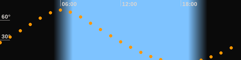 | Höchster Stand (Kulmination) | 06:05 Uhr (h = 75°) |