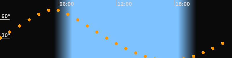 | Höchster Stand (Kulmination) | 05:29 Uhr (h = 75,1°) |