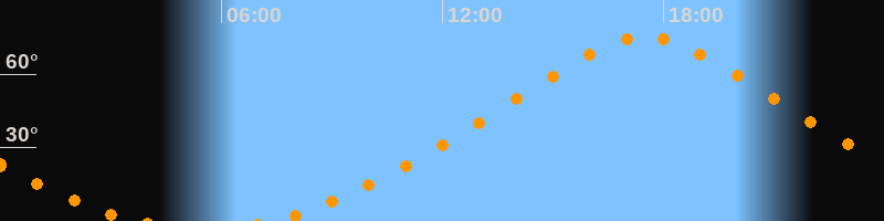 | Höchster Stand (Kulmination) | 17:30 Uhr (h = 75,1°) |