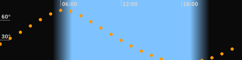 | Höchster Stand (Kulmination) | 06:20 Uhr (h = 75,1°) |