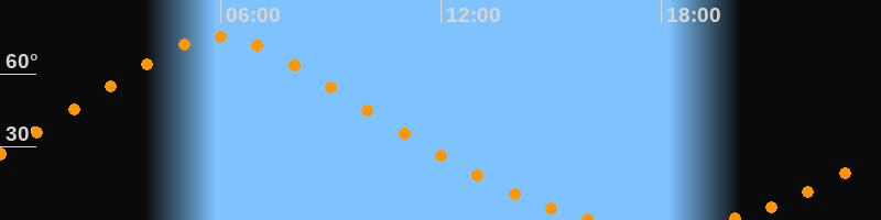 | Höchster Stand (Kulmination) | 05:58 Uhr (h = 75,1°) |